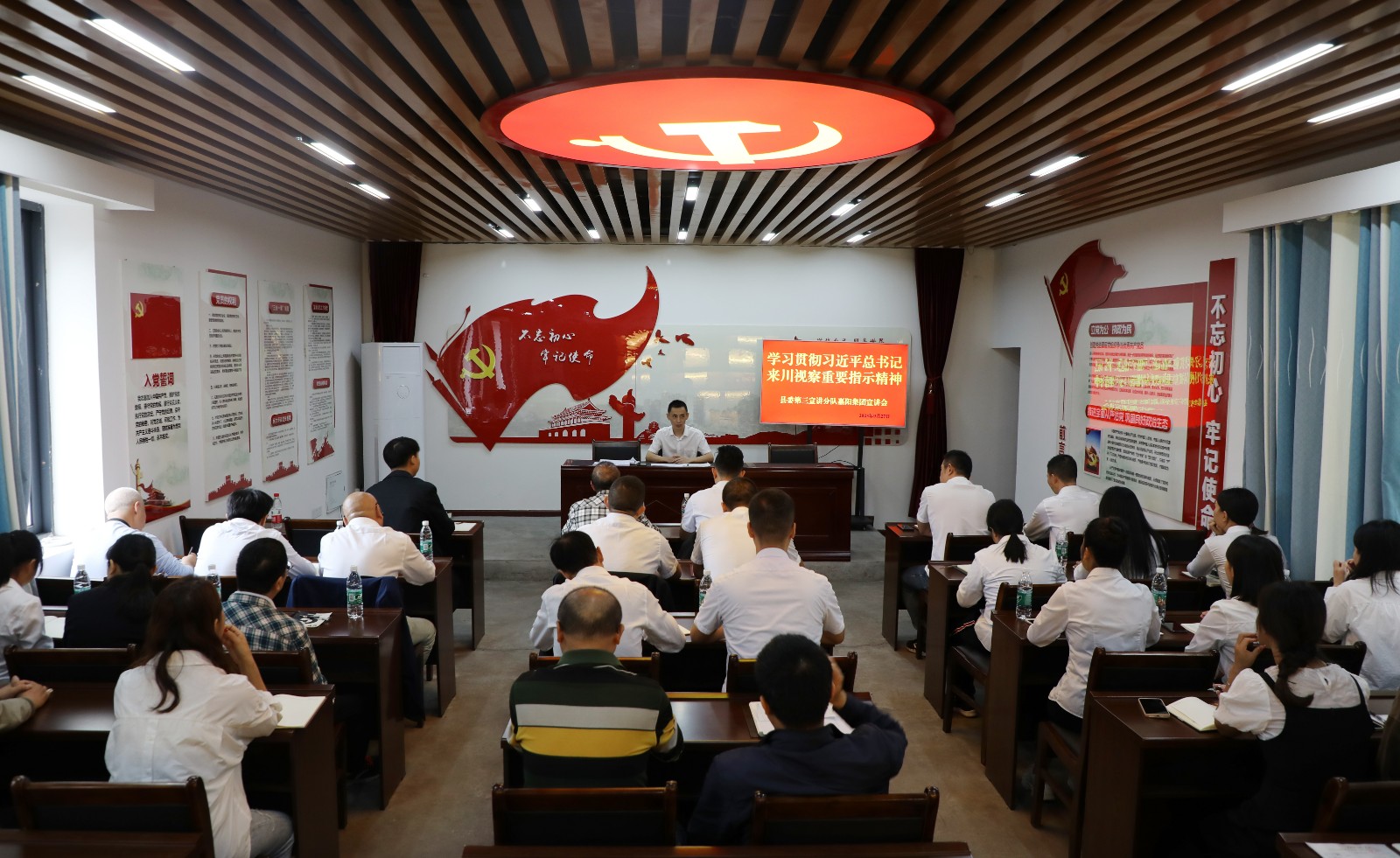 9月19日,犍为县第三宣讲队到嘉阳集团宣讲学习贯彻习近平总书记来川视察重要指示精神、省委十二届三次、市委八届七次和县委十五届八次全会精神,公司机关、综合服务公司共30余名党员聆听宣讲。
