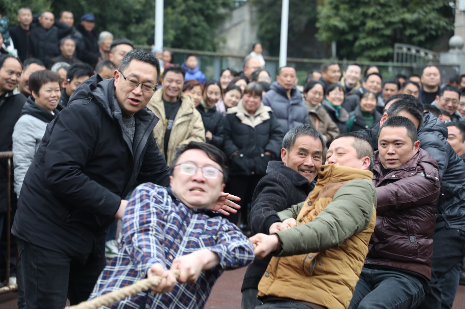 活动伊始,拔河赛在热烈的欢呼声中拉开序幕,18支男子代表队和6支女子代表队展开了紧张而激烈的角逐,展现出坚韧不拔的精神风貌,观众们为参赛选手加油鼓劲,助威声、呐喊声此起彼伏。
