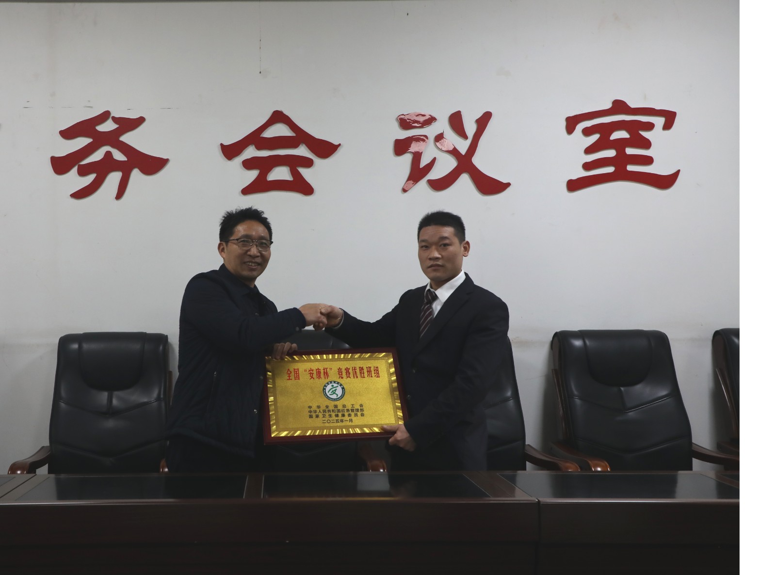 • 谢建国、王维洪为嘉阳煤矿、采煤二队采煤二组授牌 (2)