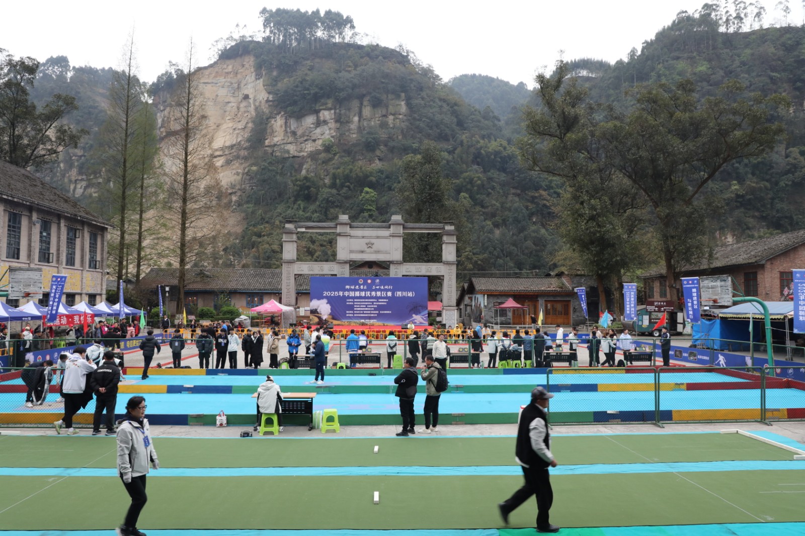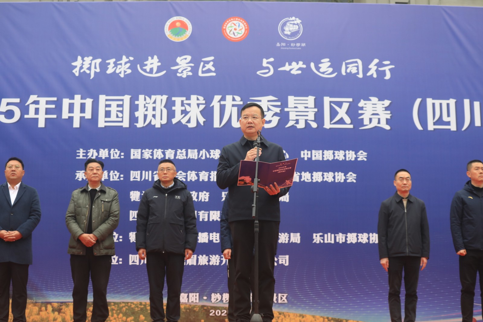 本届赛事由国家体育总局小球运动管理中心、中国掷球协会主办,四川省社会体育指导中心、四川省掷球协会、乐山市体育局、犍为县人民政府、四川嘉阳集团承办。开幕式上,乐山市人民政府副市长许天毅致欢迎辞。国家体育总局小球运动管理中心副主任、中国掷球协会主席王赟宣布2025年中国掷球优秀景区赛正式启动暨四川站比赛开赛。现场,犍为“非遗”项目“麒麟灯”、四川瑰宝“川剧变脸”等文艺演出精彩纷呈,将当地特色文化与体育元素巧妙融合,为现场观众带来了一场视觉与听觉的盛宴。