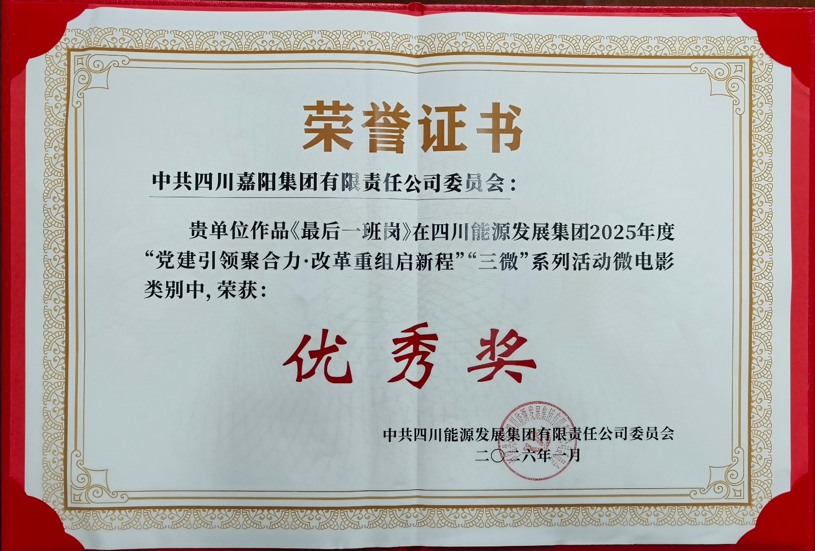 在四川能源发展集团“党建引领聚合力 改革重组启新程”2025年度“三微”(微党课、微电影、微视频)系列评选活动中,嘉阳集团斩获多项荣誉。