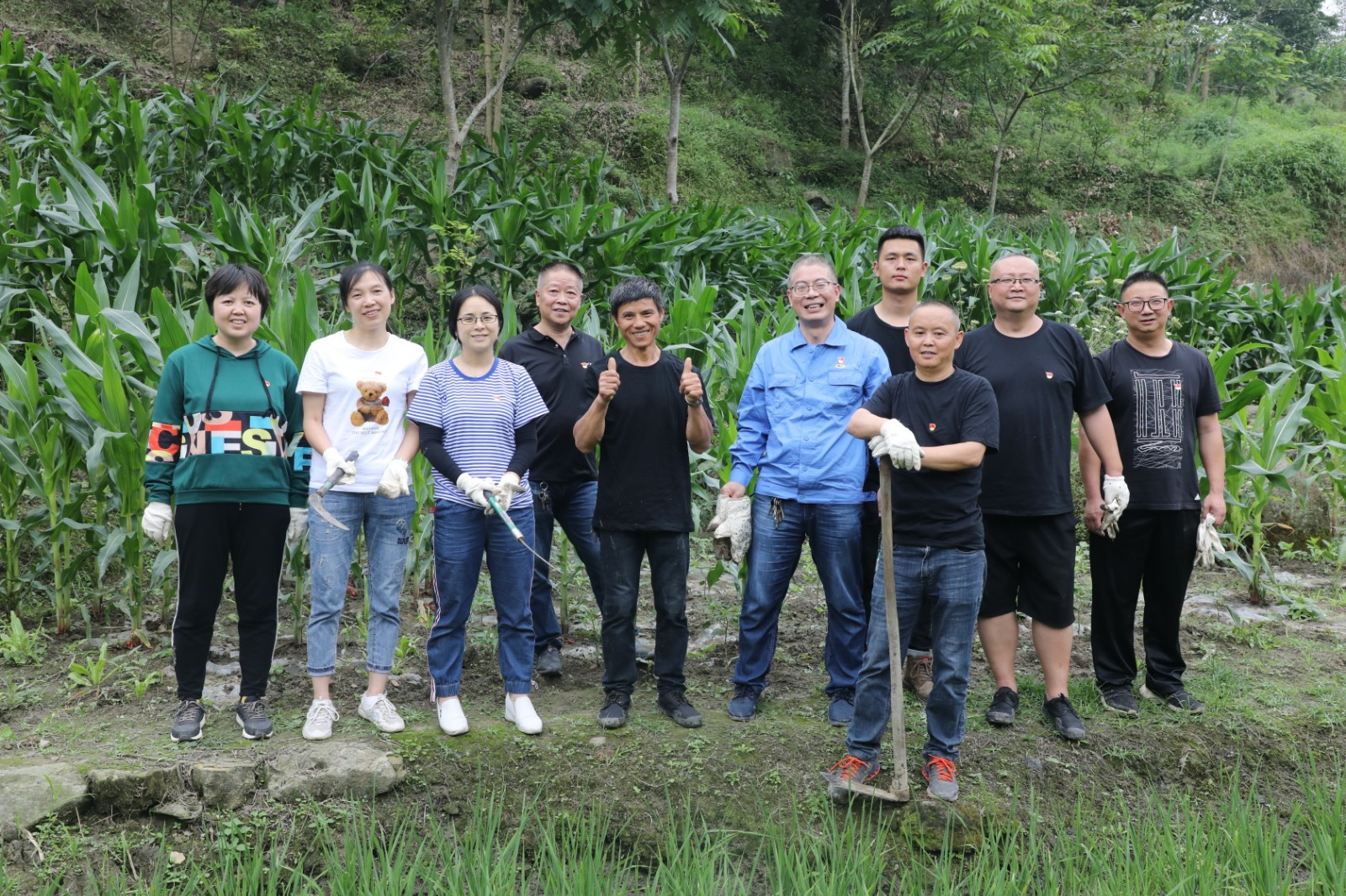 5月25日下午,物资供销公司党支部一行9人来到魏富才家。大家撸起袖子,拿上镰刀、锄头,背上背篓立马扎进地里,热火朝天的干起来。汗水浸湿了衣服,握锄头的手生疼,蚊子叮得浑身是包,可却没有一个人喊累、叫苦,所有人铆足干劲,一个下午地里的杂草全部清除干净。党员虞阳抹着脸上的汗水说:“半天的辛苦,换来了干净的农田和魏富才的笑脸,能够为职工排忧解难,感觉值得。”