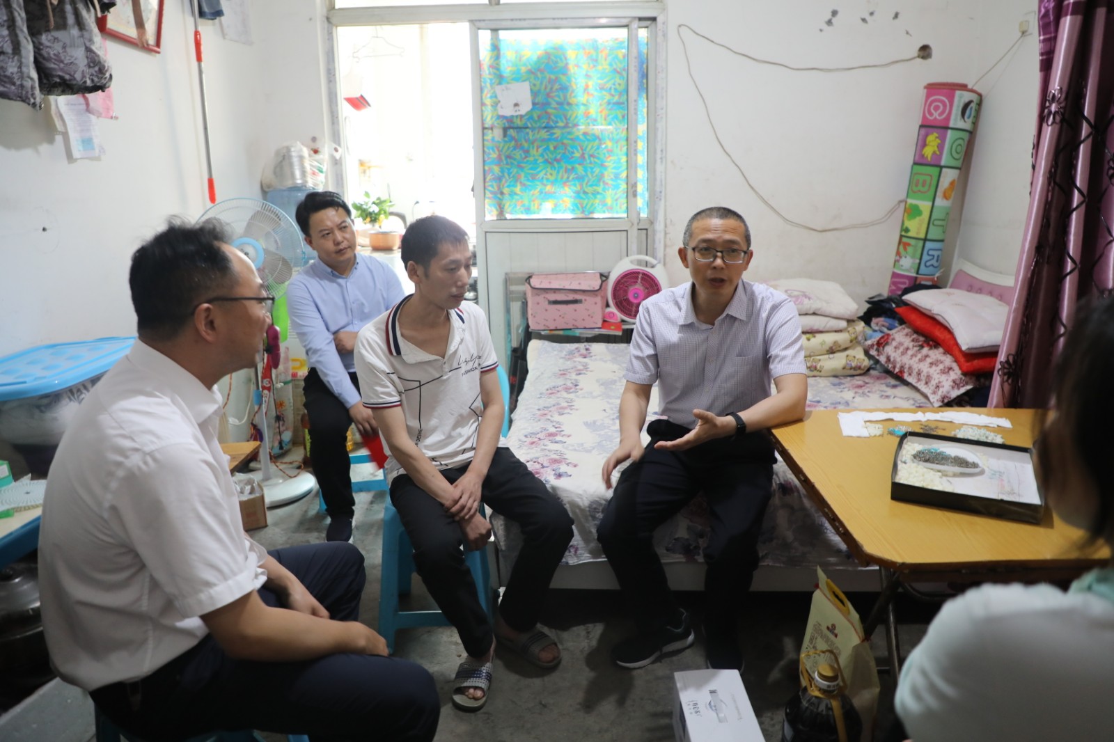 黄国兵主席一行轻车从简,一下车便直奔困难职工家中,先后走访慰问了嘉阳煤矿采煤二队困难职工陈满洪、省五一劳动奖章获得者潘叶生和技能人才工作室技师但通。每到一处,市县总工会领导同志都与困难职工、劳模亲切交谈,详细询问了解他们的生活状况和实际困难。