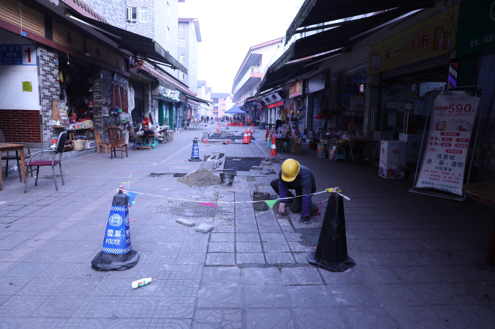 嘉阳集团深入贯彻“我为群众办实事”,着力解决职工身边的糟心事、烦心事,从12月20日开始对矿区商业步行街路面进行修补,让职工群众走上“安心路”、“放心路”。