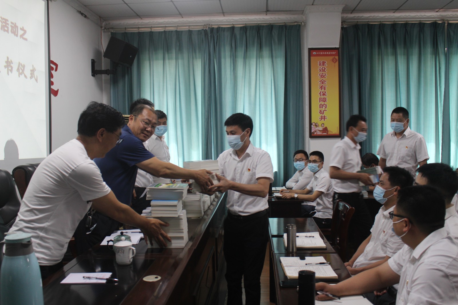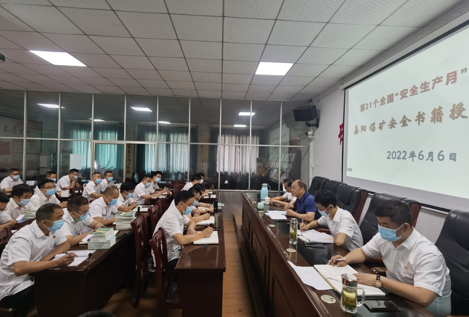 6月6日,嘉阳煤矿举行安全书籍授书仪式,嘉阳集团总经理范勤英为煤矿各生产队和矿办相关负责人授最新安全读本,针对近期煤矿安全生产实际指出安全技术管理新思路,提出新要求。
