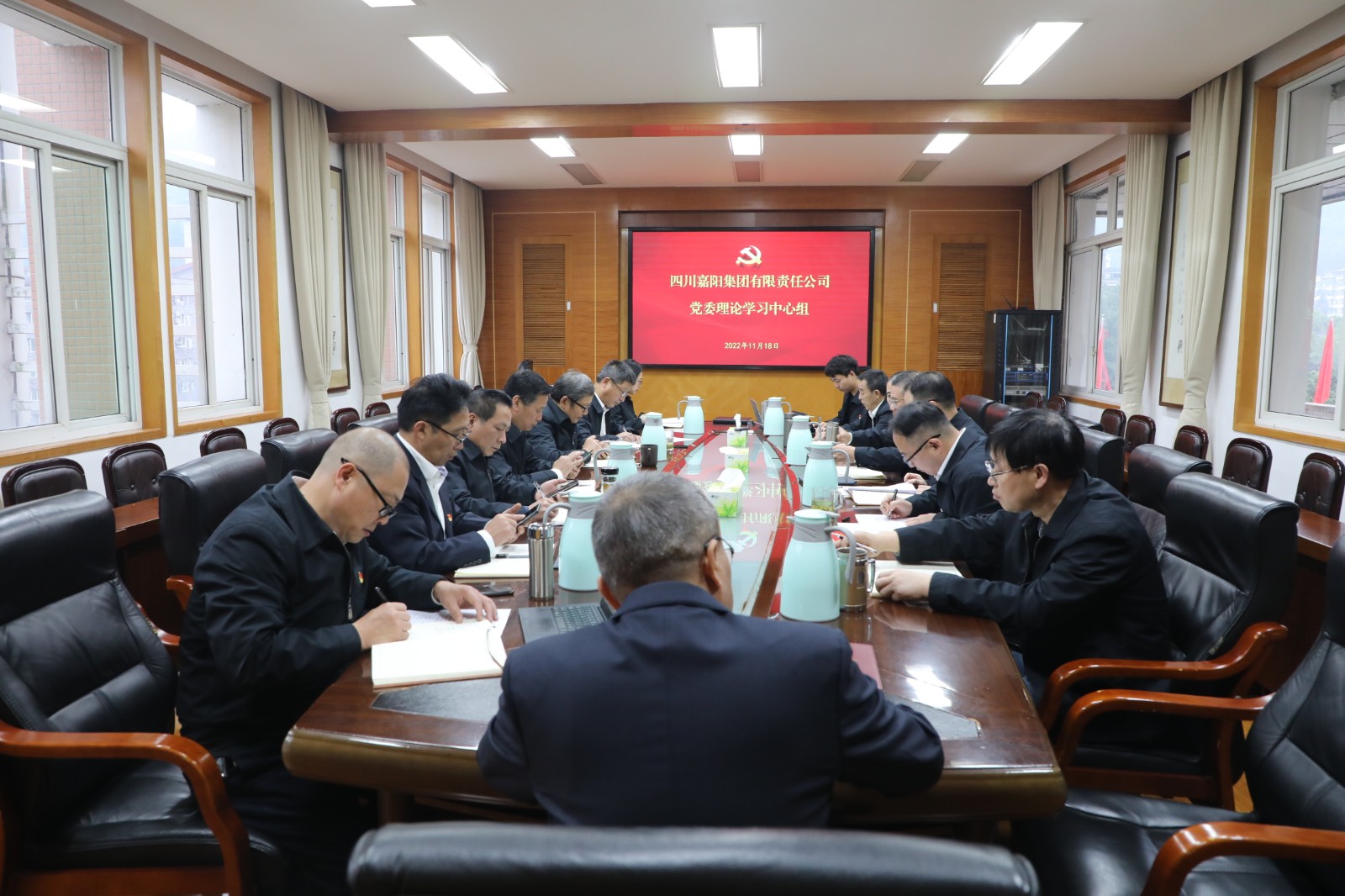 11月18日,嘉阳集团党委理论中心组深入学习党的二十大精神,党委书记、董事长杜勤主持。